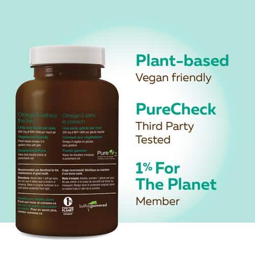100% plant-based Omega-3 from marine algae-the original source fish get their Omega-3s from. Same EPA/DHA without the fish.